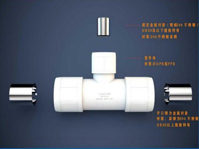 4、開口彈力金屬襯套能夠阻止插口塑料流動造成的管道堵塞,同時產(chǎn)生 的外張力能夠?qū)⒉蹇谒芰吓c管材內(nèi)壁塑料完全擠緊,熔接安全性大幅提高。